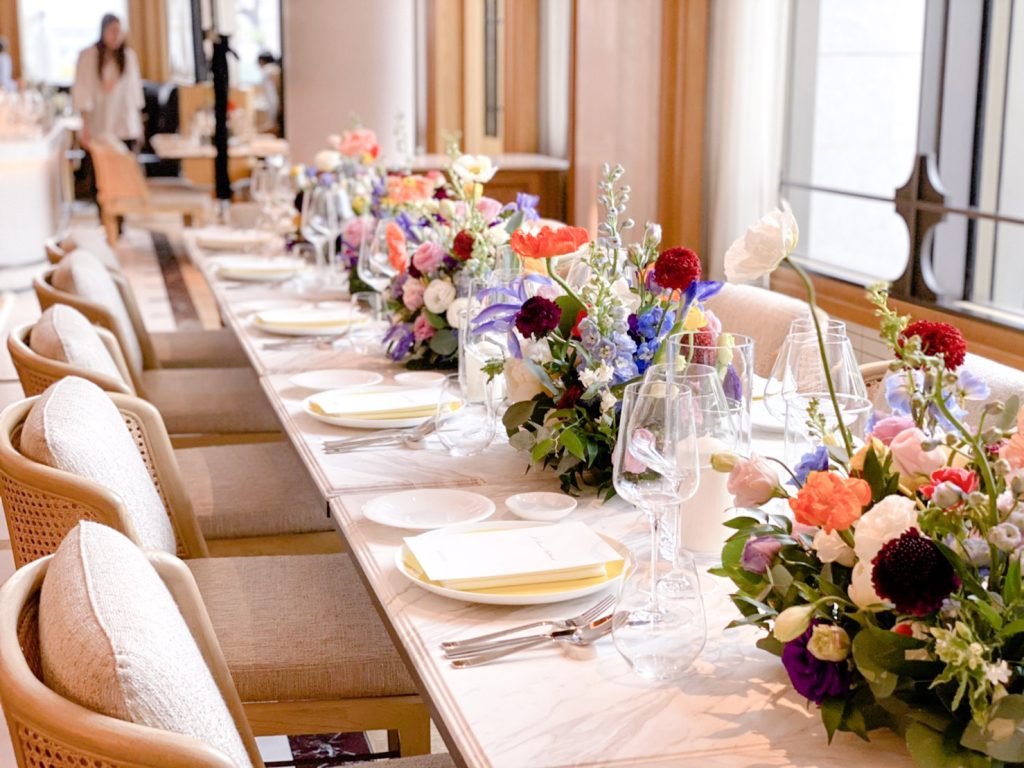 A cozy holiday dinner party decoration for Gucci at Riva Del Fiume.